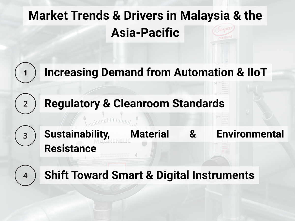 - Malaysian industries (oil & gas, water/wastewater, food & beverage, pharmaceuticals) are under pressure to reduce downtime, improve compliance, and collect more data, this favors digital and smart instrumentation.