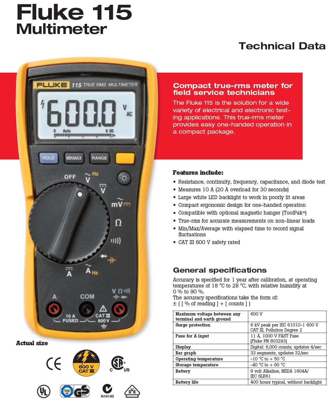 The Fluke 115 is the solution for a wide variety of electrical and electronic testing applications. Also check out the Fluke 114 Electrical Multimeter, the Fluke 116 HVAC Multimeter with Temperature and Microamps, and the Fluke 117, the Electrician’s Multimeter with Non-contact voltage.